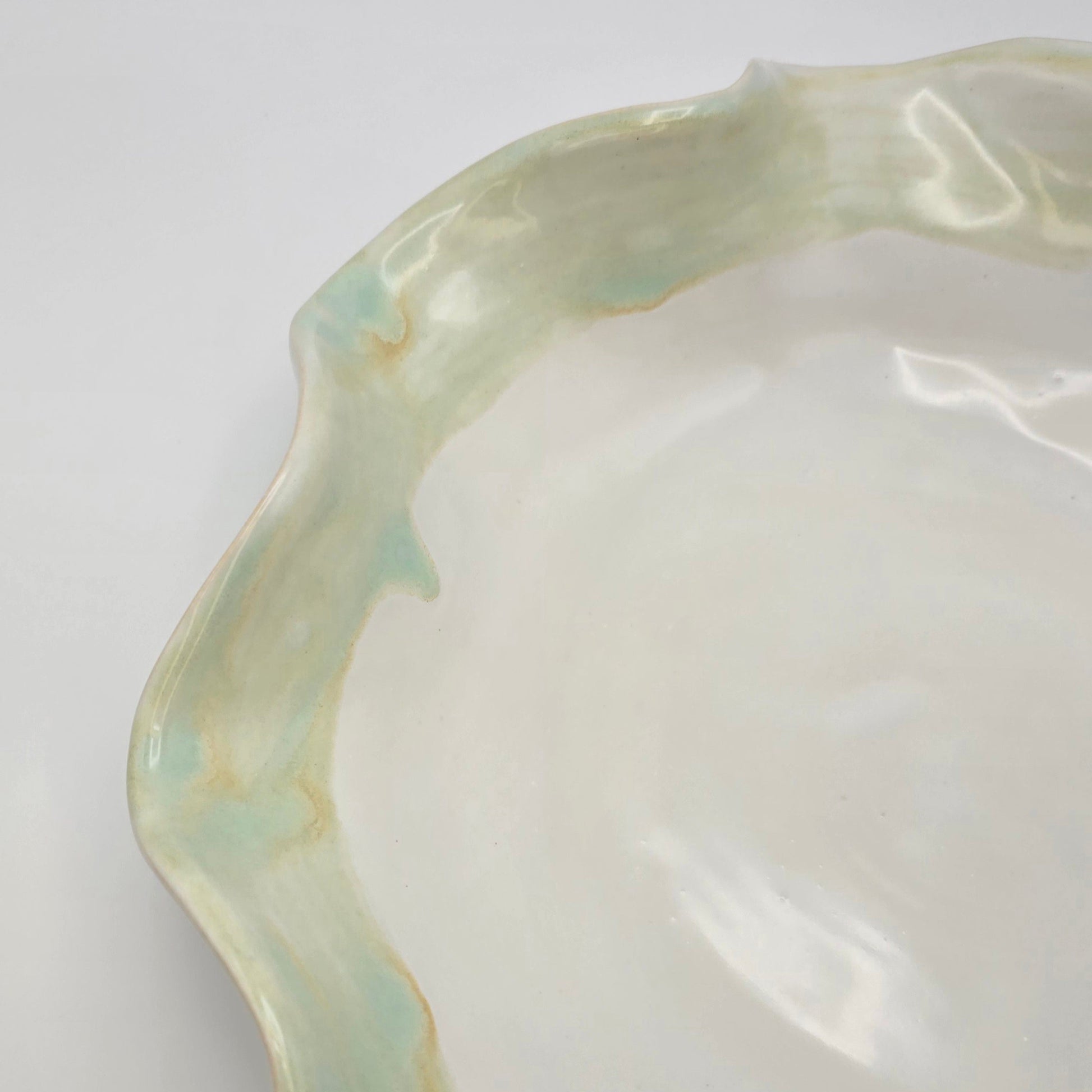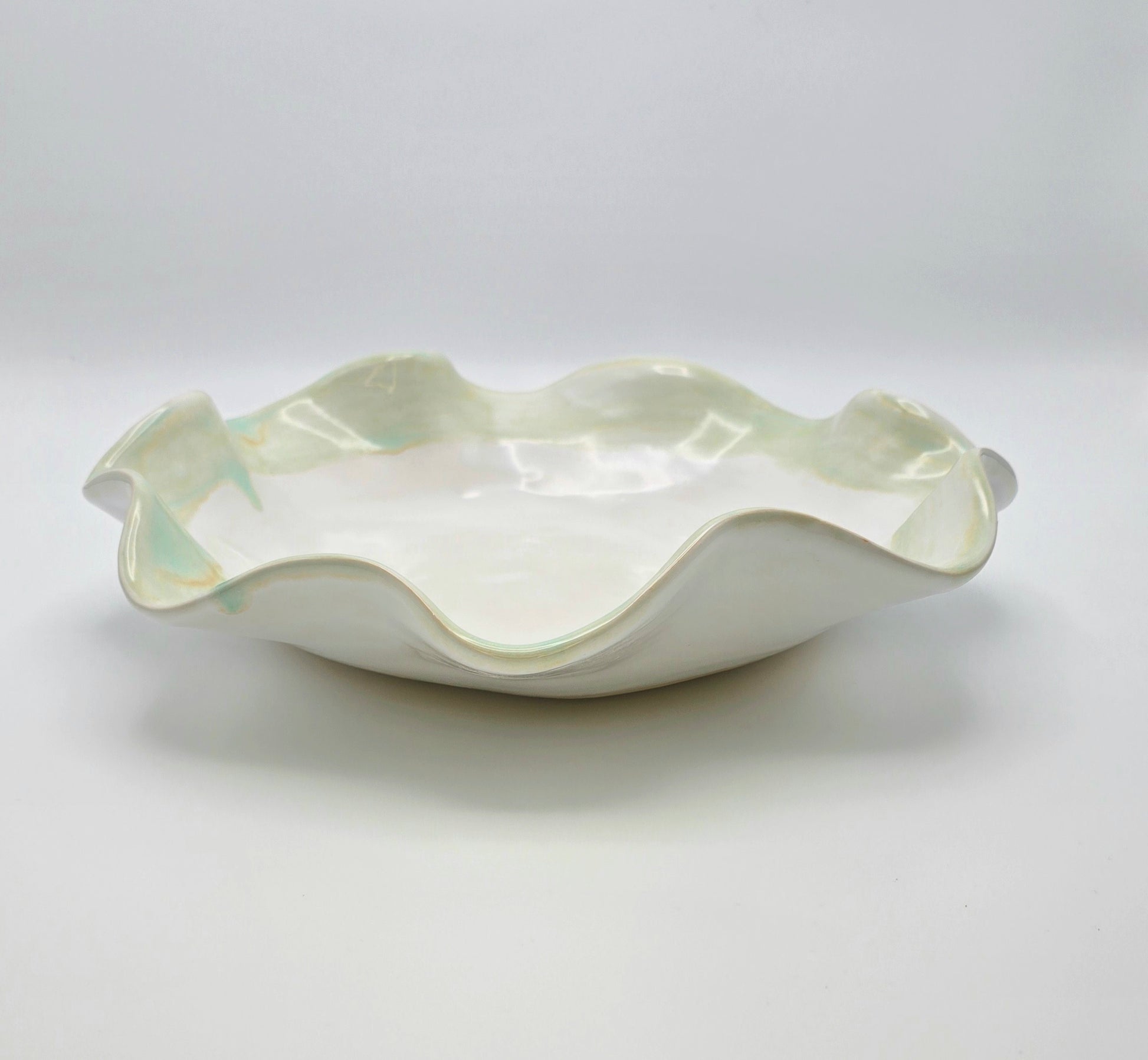 Aurora Clair de Brise captures the delicate freshness of a soft breeze. Whispering layers of white, serene green, and warm ochre drift across the form like sunlight filtering through morning air. Hand-sculpted and finished with nuanced glaze layering, this piece embodies calm movement, natural grace, and refined elegance — a quiet statement of timeless beauty.