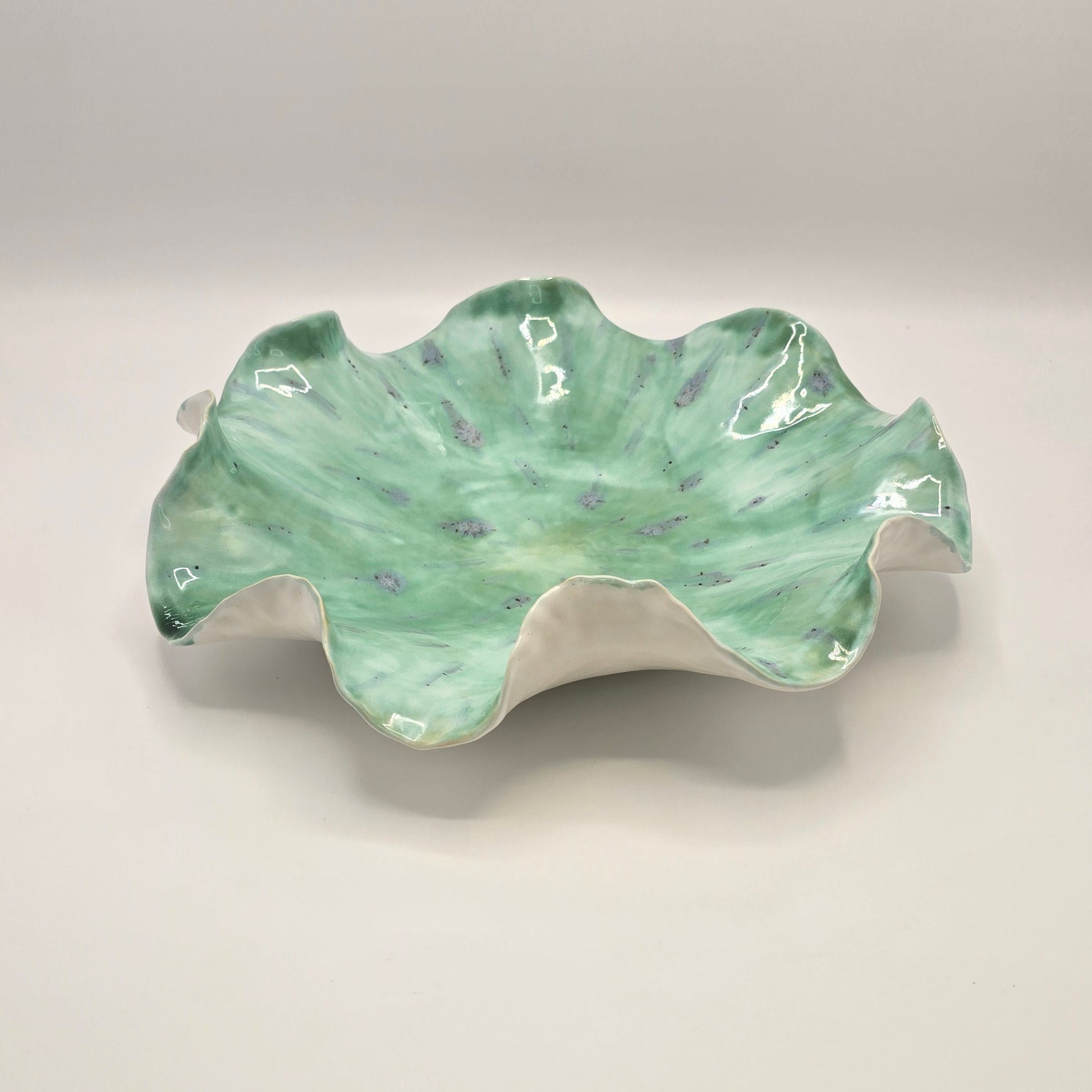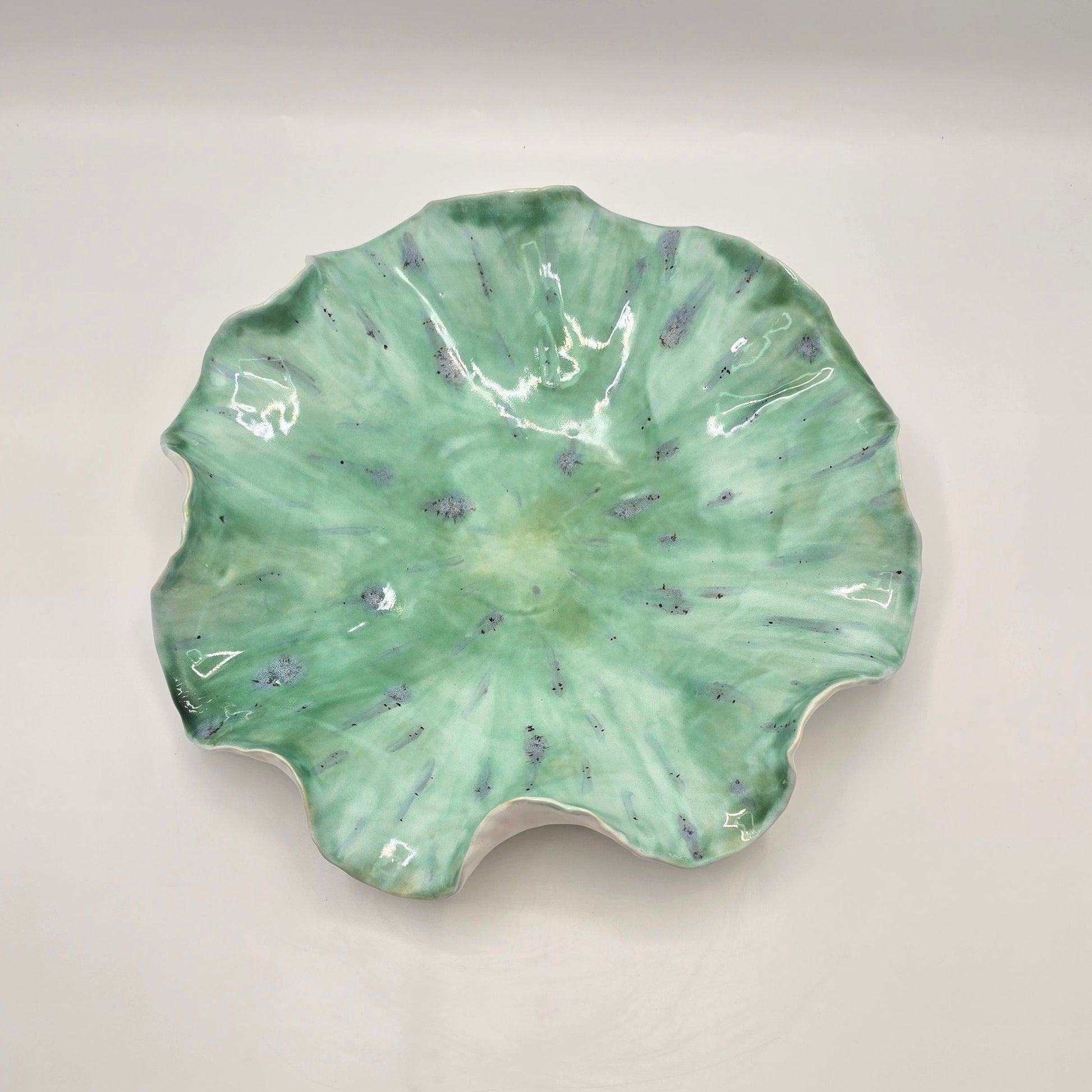 Aurora Lagune captures the quiet poetry of still water — where light, depth, and movement meet in a serene ceramic form. Shaped slowly by hand, its flowing silhouette and translucent green glaze evoke a sense of calm, offering a sculptural presence that feels both organic and timeless.