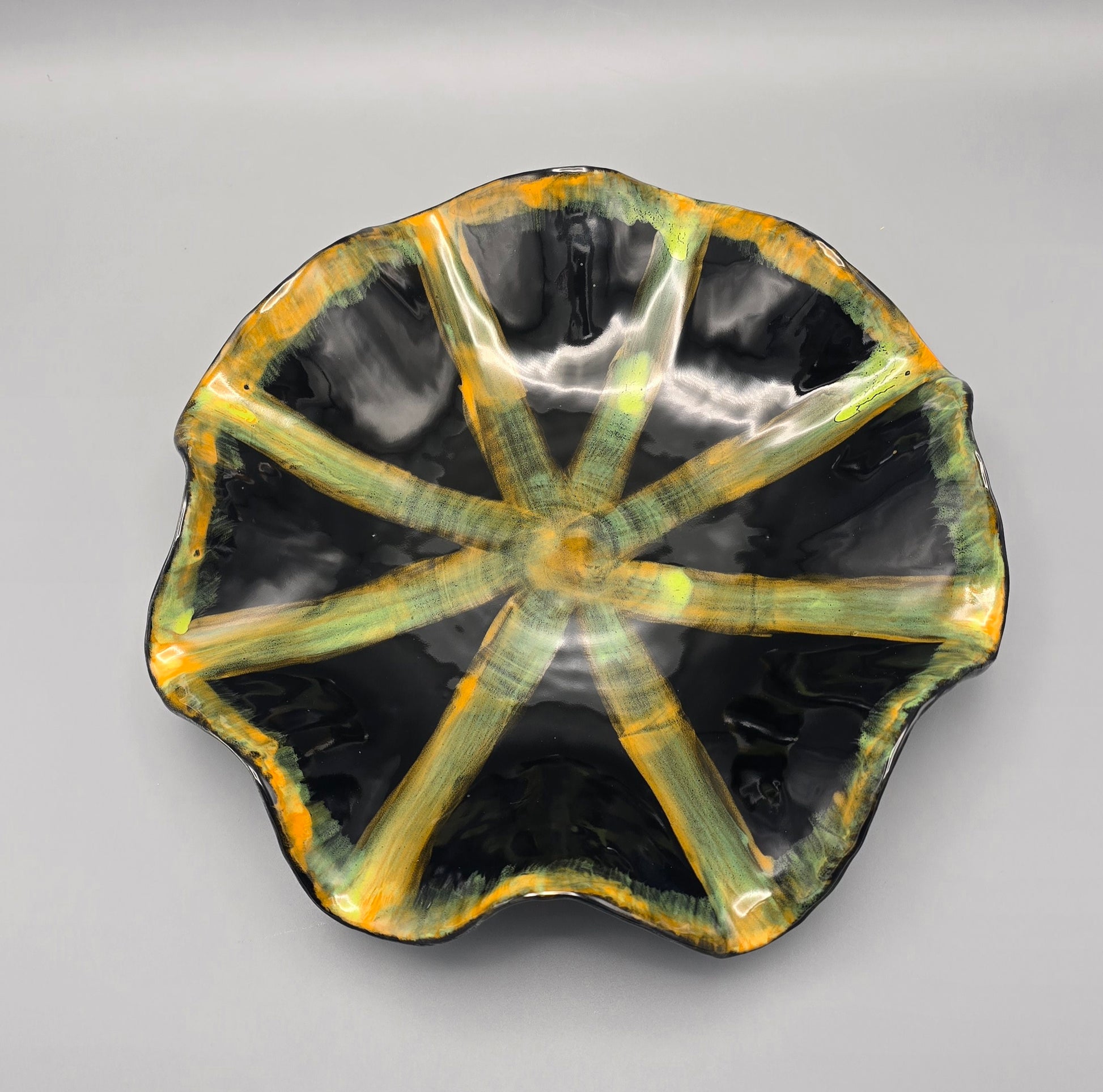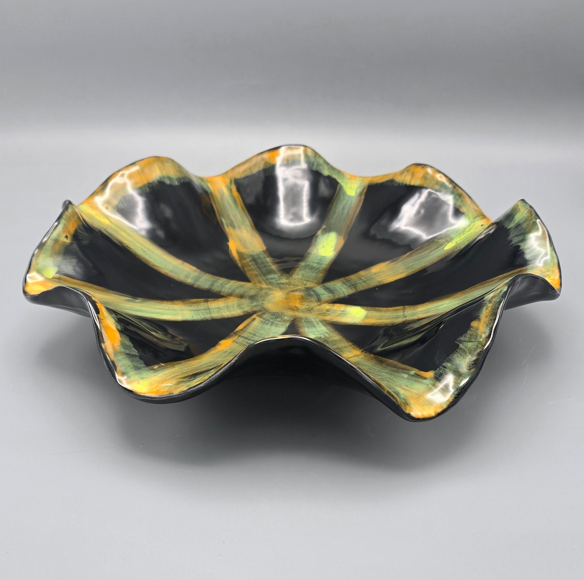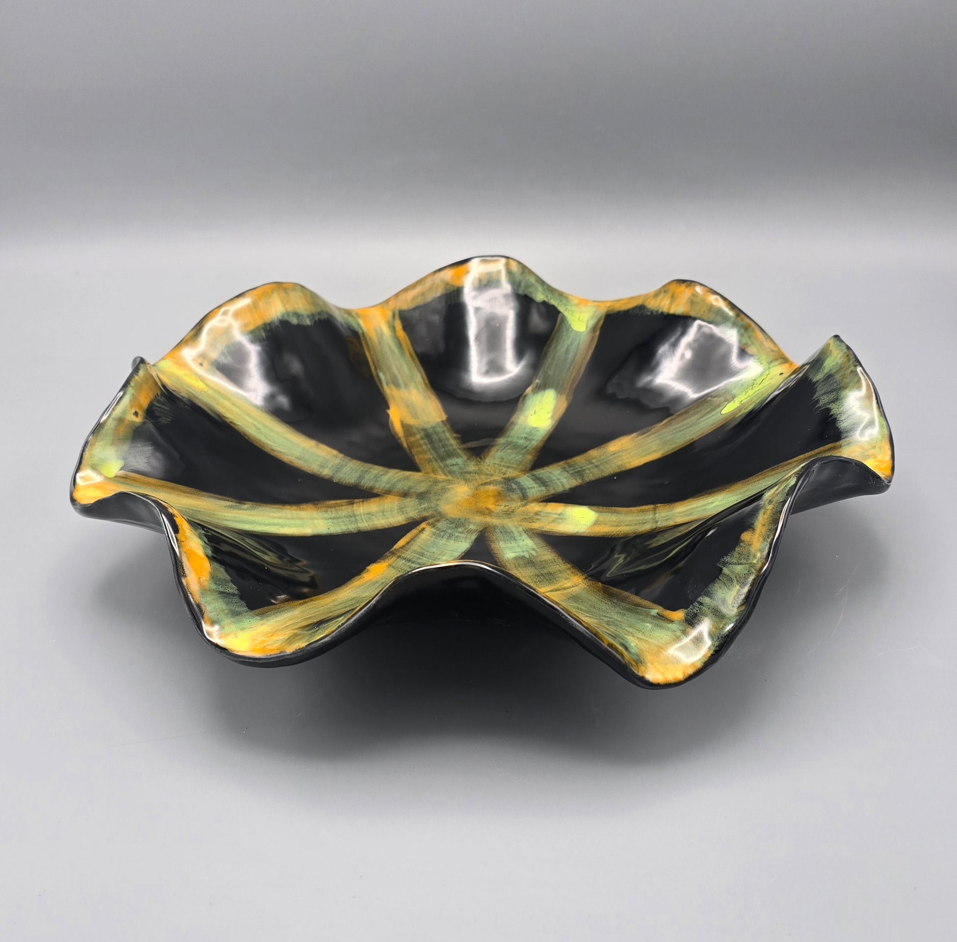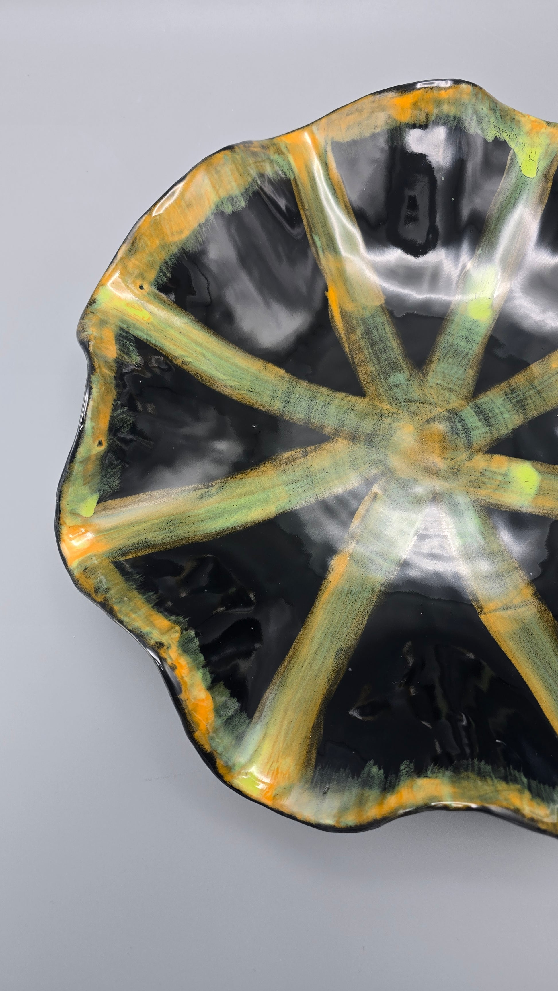 Aurora Soleil Noir reflects the quiet power of contrast. Deep black tones embrace streams of molten gold and soft amber, evoking the mysterious glow of a hidden sun. Sculpted by hand and finished with layered glazes, this piece embodies strength, warmth, and refined beauty — a statement of modern elegance.