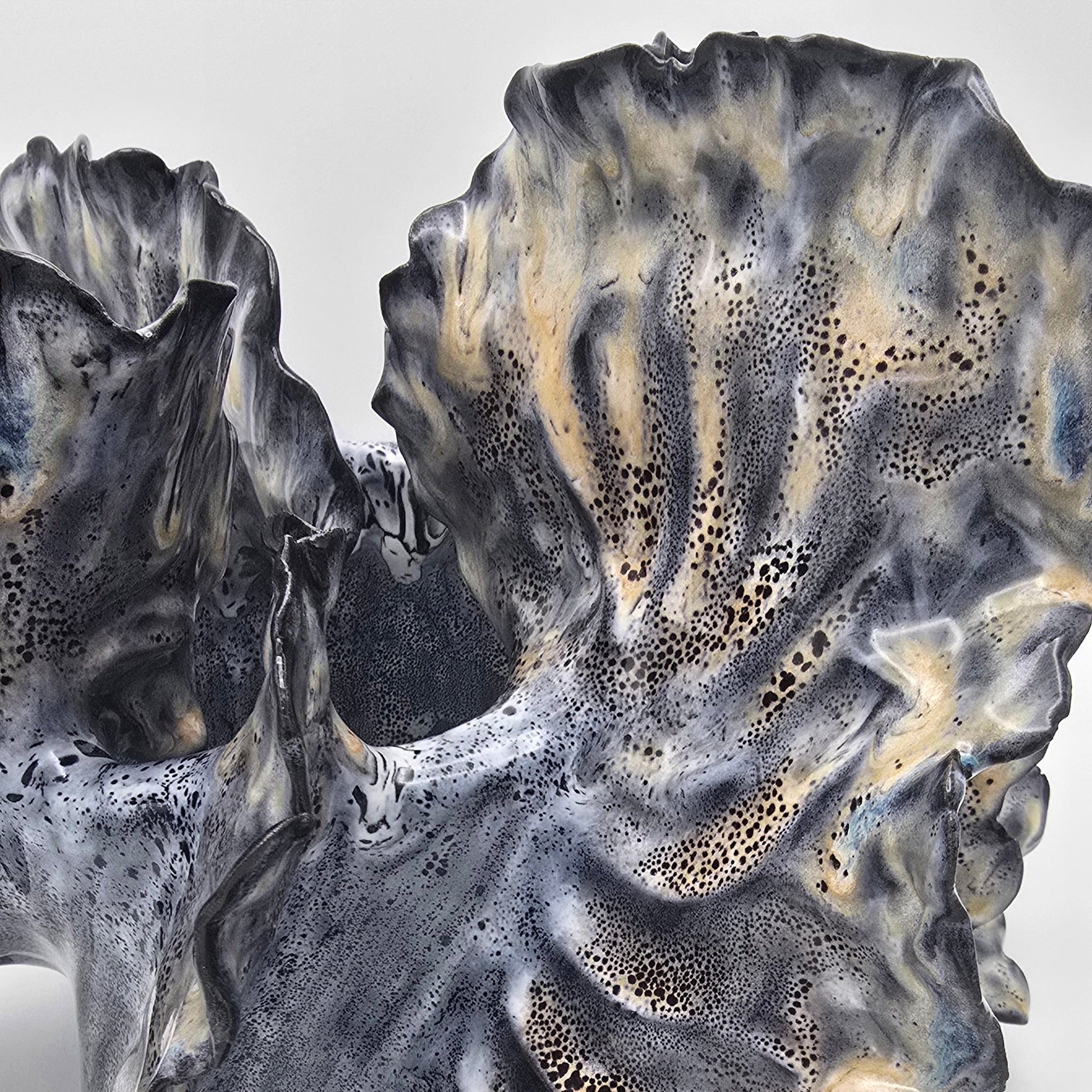 Inspired by the shifting currents of air and wind, these pieces are captivating studies in motion and lightness. Through a meticulous, time-intensive process, the ceramic is shaped into continuous, fluid lines that echo the graceful flow of the atmosphere. The result is a striking statement piece that brings the sublime, airy elegance of nature into your space.