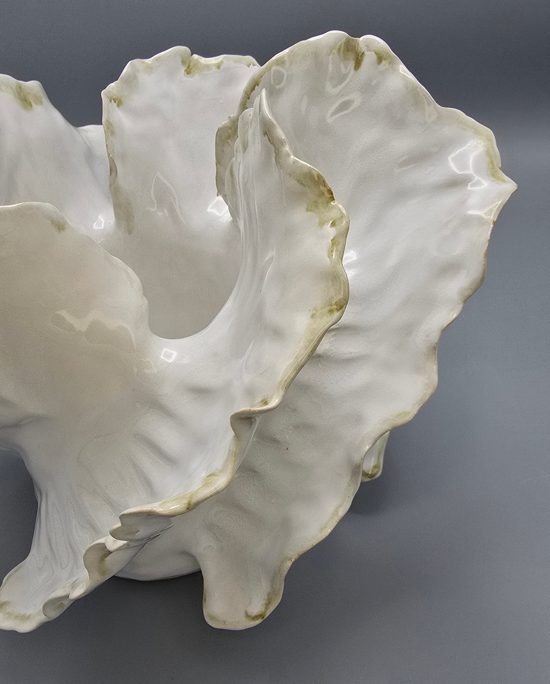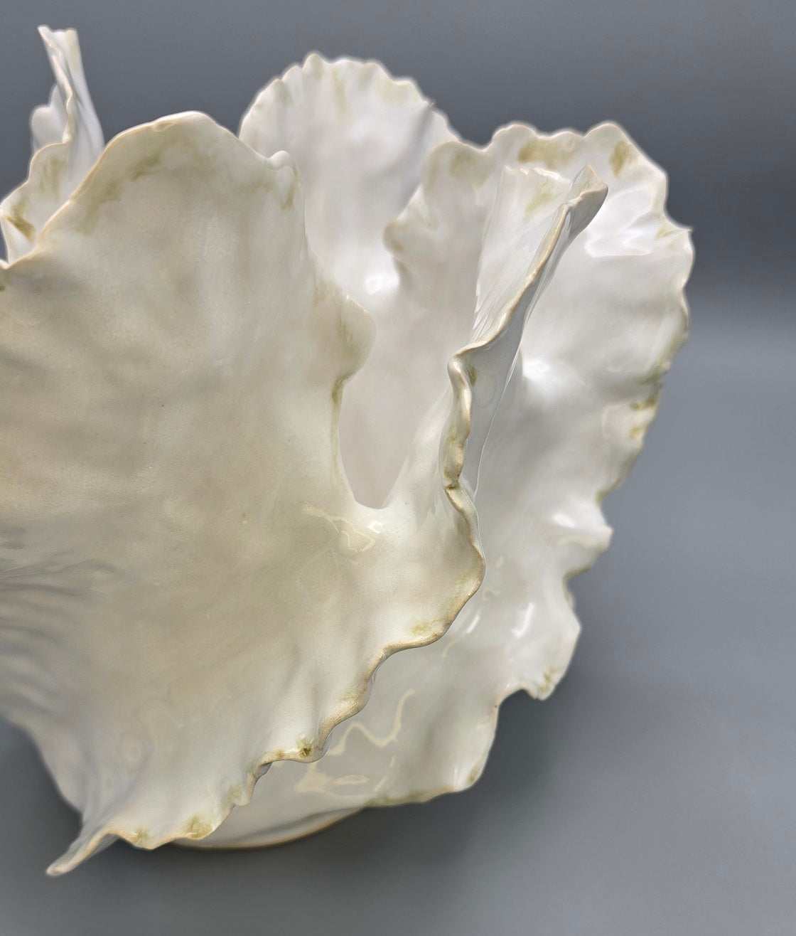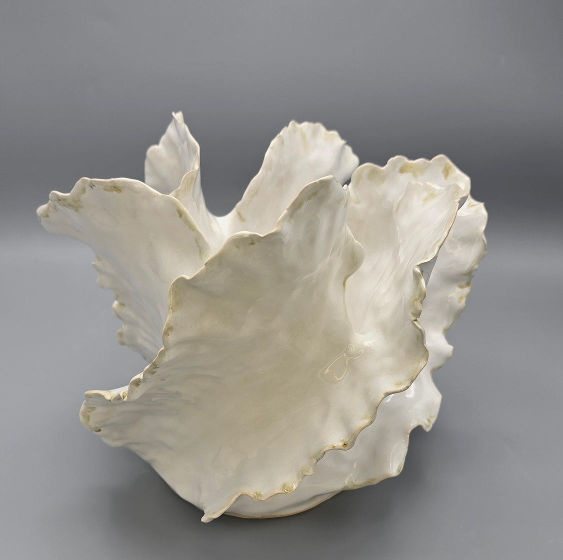 Inspired by the fluid grace of ocean waves, this piece captures motion in stillness. Each curve is hand-built with intention, flowing organically to create a sculptural form that feels both serene and powerful. Finished in a luminous white glaze with a delicate brown-gold edge, it pays quiet homage to the sea’s eternal rhythm and refined natural beauty.