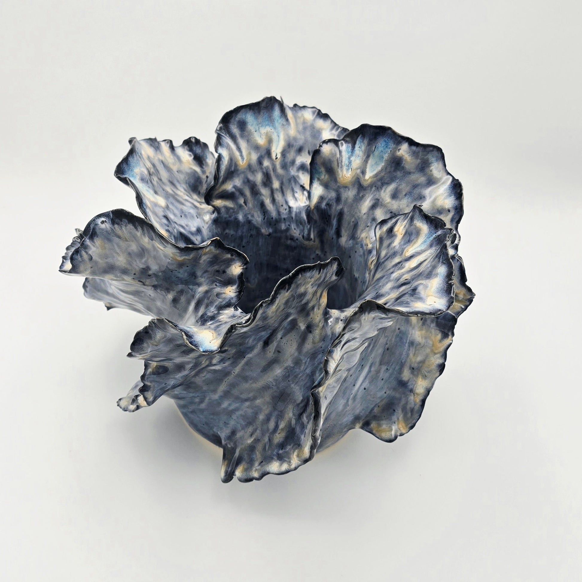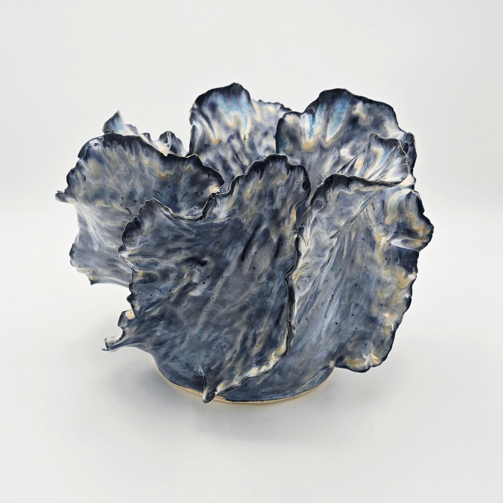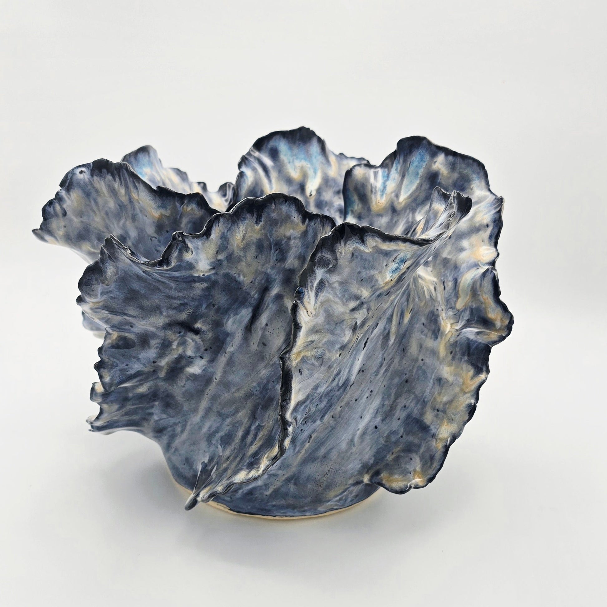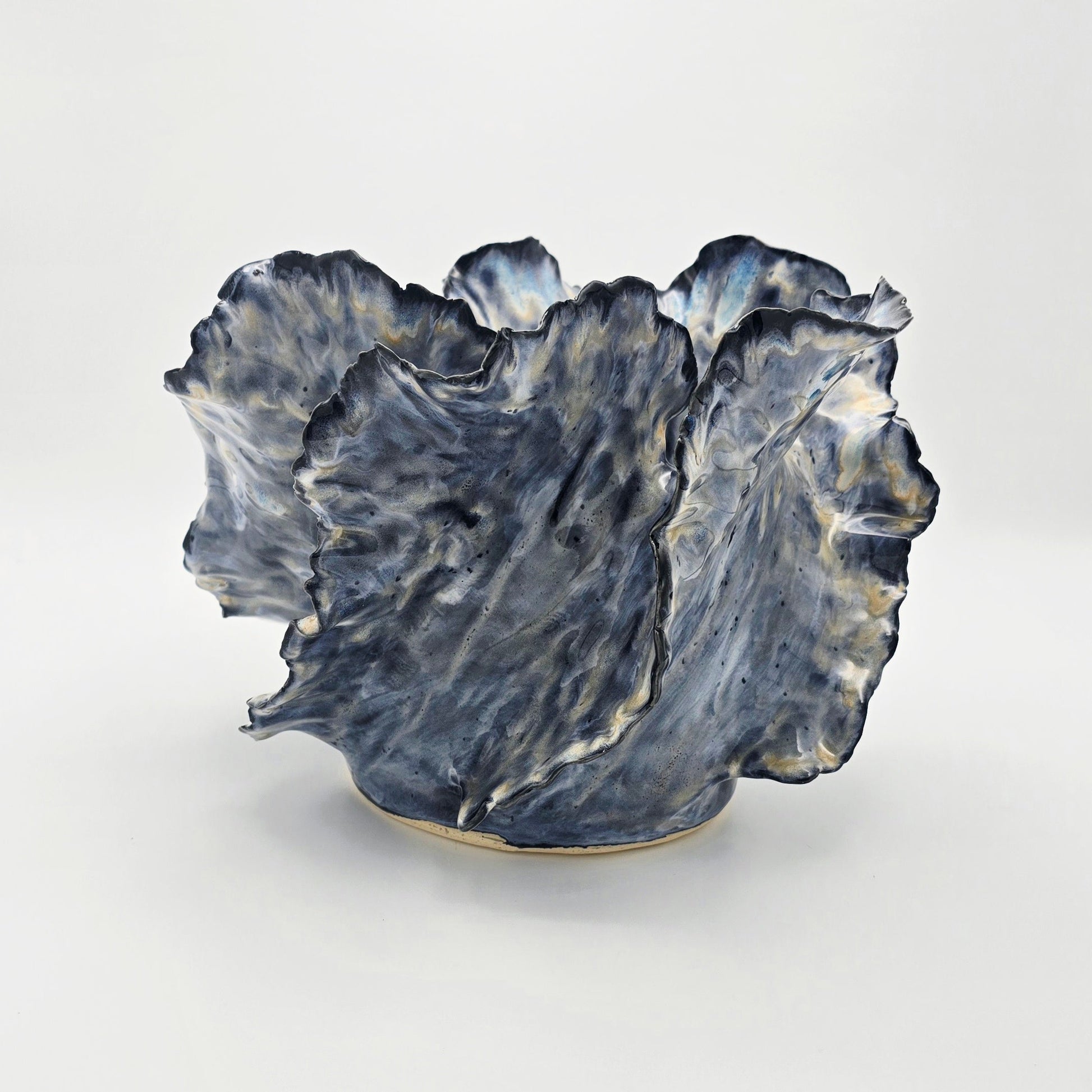Inspired by the fluid grace of ocean waves, this piece captures movement in serene stillness. Each handbuilt curve flows naturally, forming a sculptural silhouette with soft, organic edges.